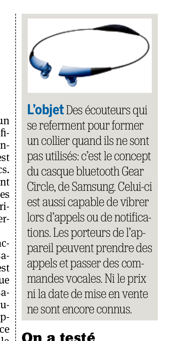 Écouteurs-collierVu dans le 20 Minutes (VD), 1er septembre 2014, p. 12. Y a-t-il plus disgracieux que des écouteurs autour du cou ? Détrompez-vous ! |
